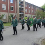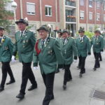 Angeführt vom Königspaar Ludger I. und Claudia I., begleitet vom gesamten Bataillon des BSV Waltrop sowie den musikalischen Klängen des „Spielmannszug Heimatklänge Waltrop“ und der festlichen „Blaskapelle Elmenhorst“, setzte sich der Zug in Bewegung zum Ehrendenkmal am Waltroper Rathaus. Auch Bürgermeister Marcel Mittelbach erwies dem Verein die Ehre und begleitete die Zeremonie.